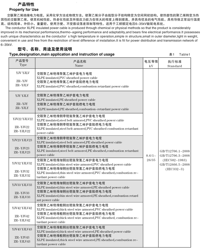 High voltage XLPE insulated power cable (10-35KV)
